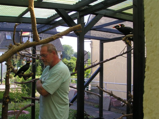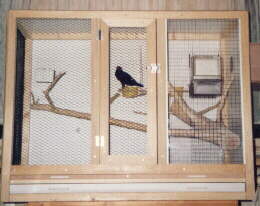 1990 (April) Beo Hubert wurde angeschafft. Anfangs noch in einem sog. Original-Beokaefig untergebracht. Das wurde im Juli 1990 durch den Bau einer Voliere geaendert. Abb. R | ||||||||||||||||||||||||||||||||||||||||||||||||||||||||||||||||||||||||||||||||||||||||||||||||||||